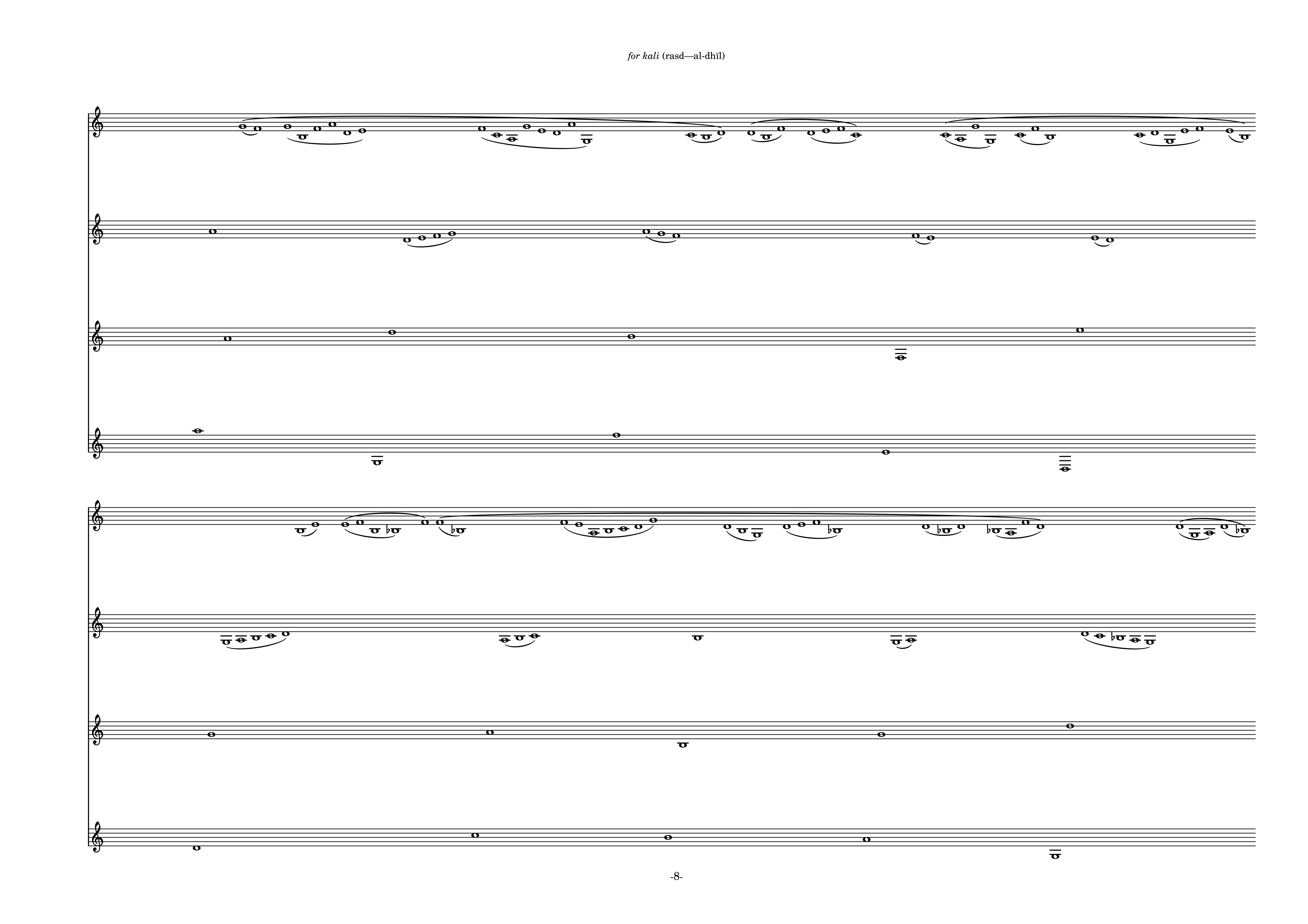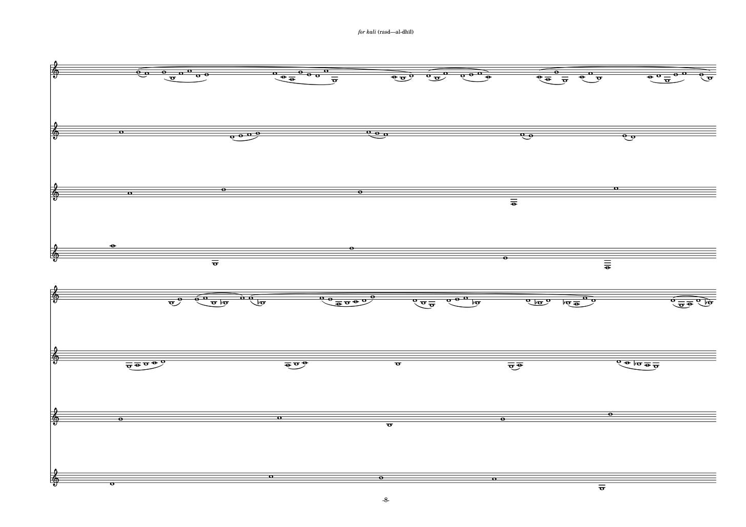 Initially, for kali was commissioned by Kali Ensemble and written for violin, cello, flute, clarinet, harmonium, piano and zither. The piece is inspired, from a distance, by the vast repertoire of Arab-Andalusī nūbat, in particular their modes and slower, semi-improvised sections. for kali is not an attempt to recreate this genre: it rather displays a kind of 'hollowness' — emptying the substance of these music traditions and eventually finding something that has everything but mostly nothing to do with them.
